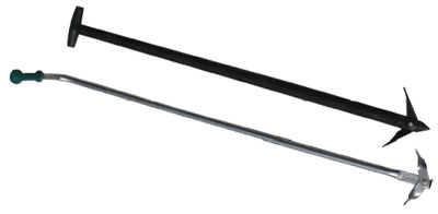 En beluftningsstok er god til at blande affaldet med. Når den stikkes ned i kompostmassen presses vingerne ind mod stokken. Når man trækker den til sig, breder vingerne sig ud til et anker,der pløjer sig igennem kompostmassen og lufter den.